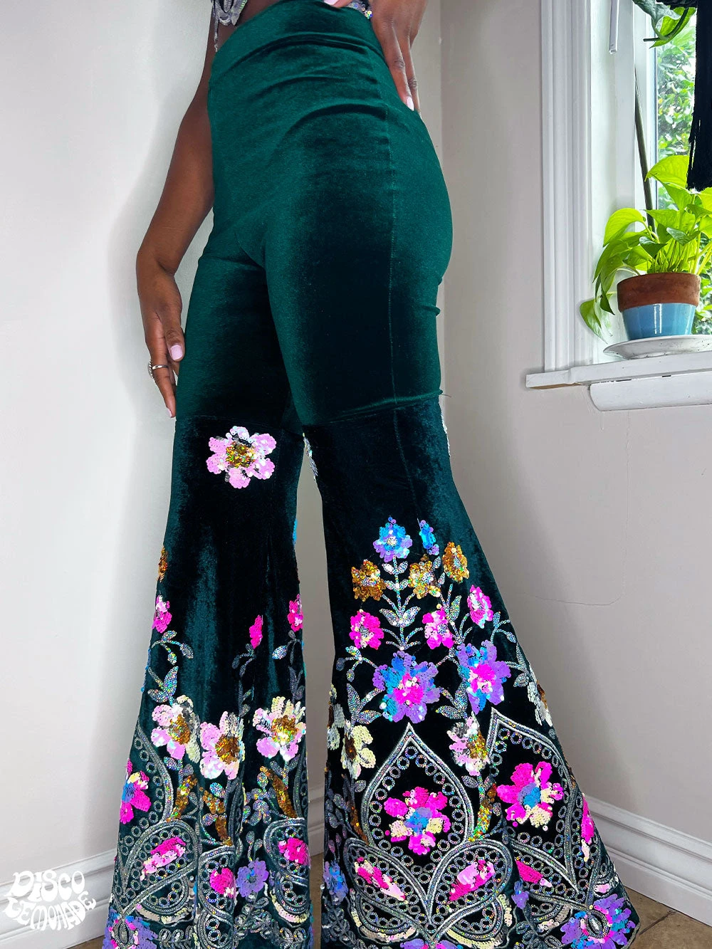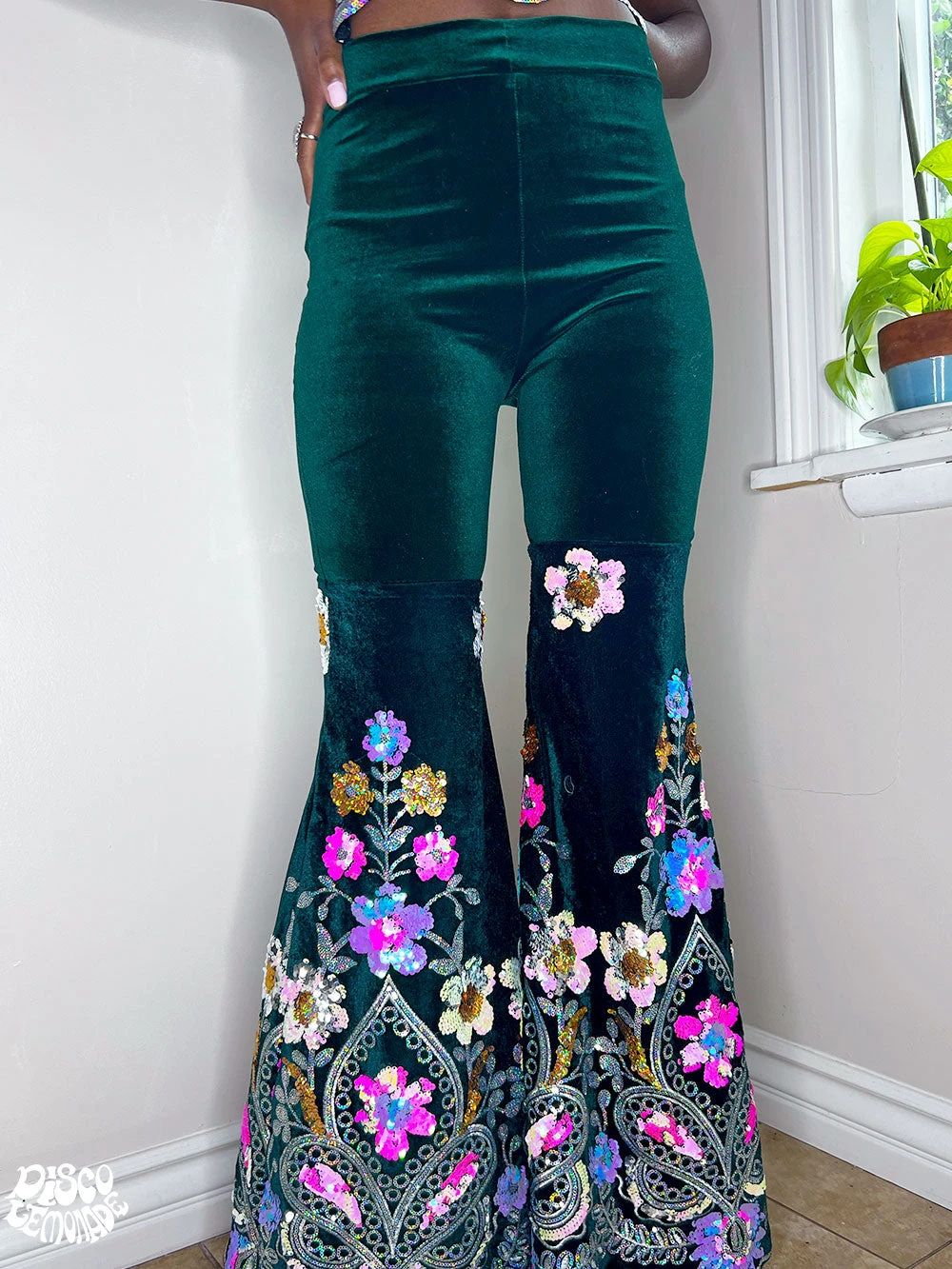 Dark green velvet bells with big beautiful sequin bell bottoms.