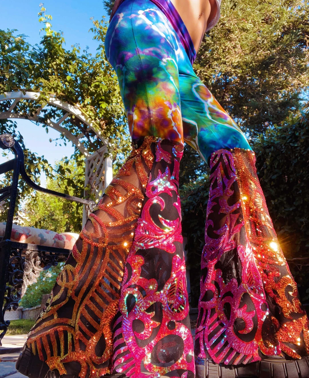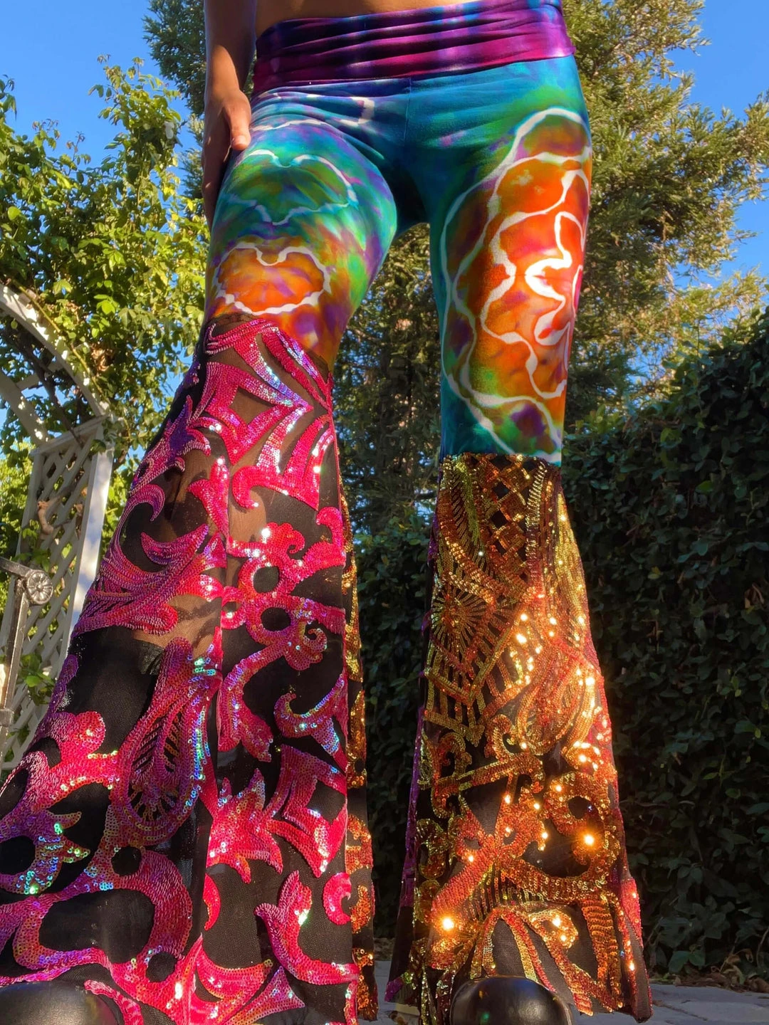 PSYdye {IG} & Disco Lemonade have teamed up to fulfill your rainbow DREAMS. A collection of rainbow bells from psychedelic heaven! 100% handmade bells hand dyed with sequin bell bottoms for the perfect combination of trippy, sparkly rainbow deliciousness!