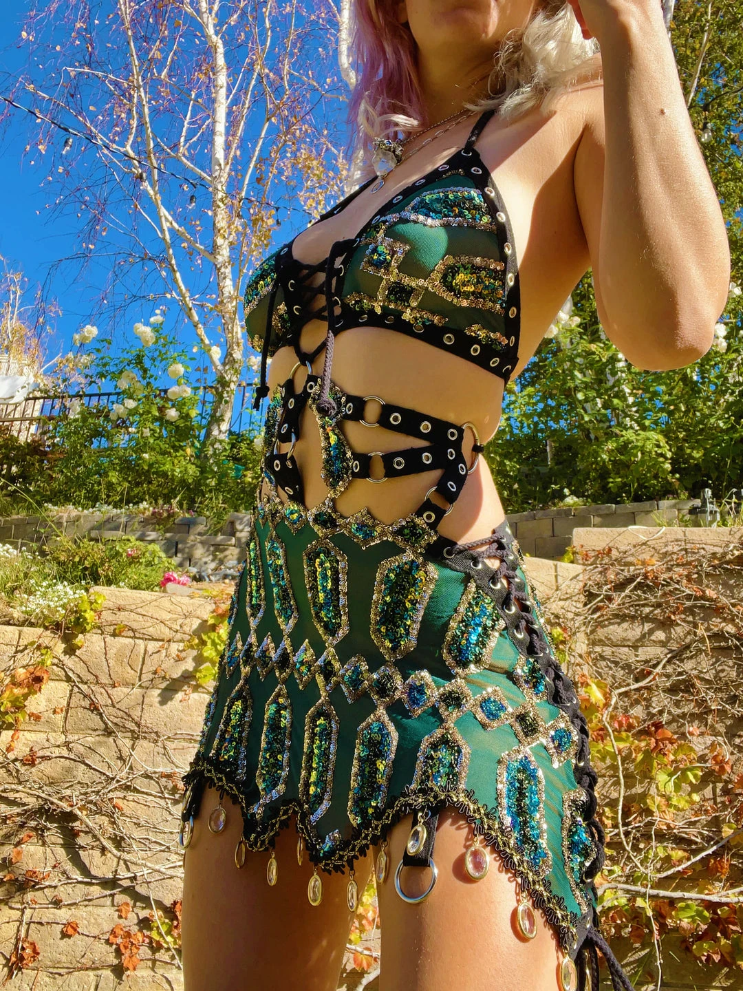 Waist: 27 in (at tightest) can be adjusted bigger with lace up ties up to 29 in.