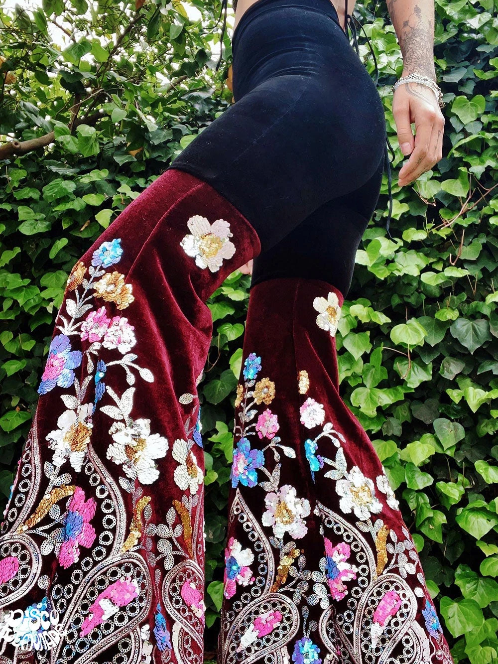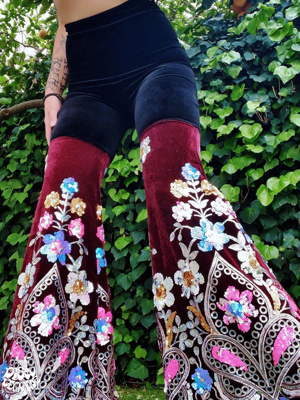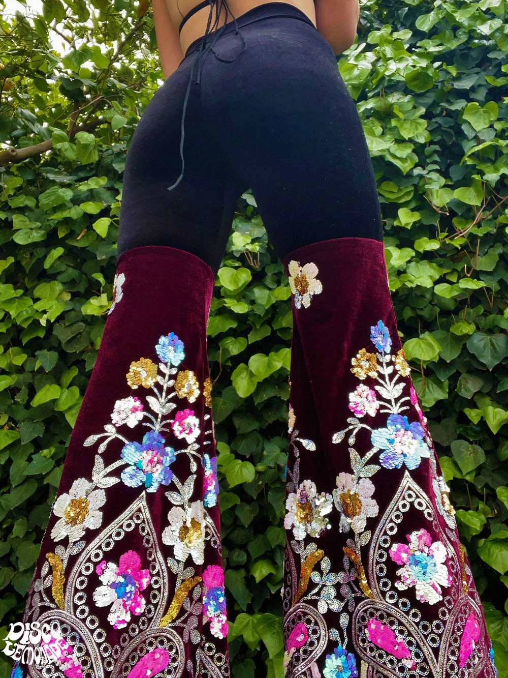 Maroon velvet bells with big beautiful sequin bell bottoms.