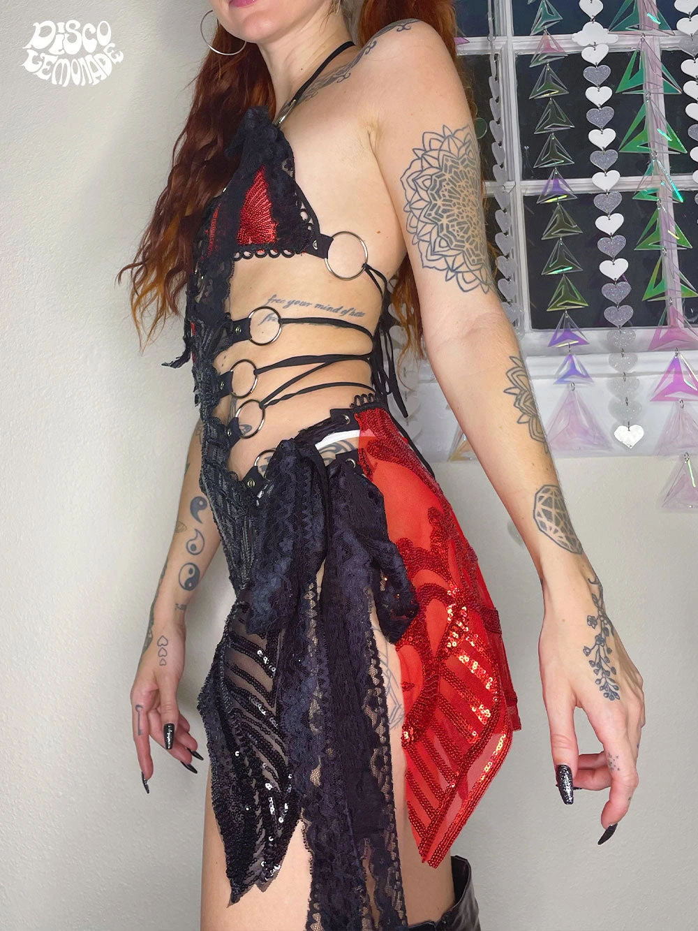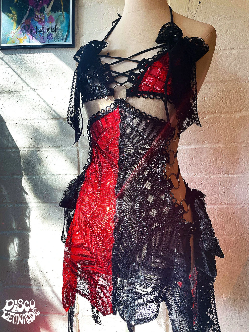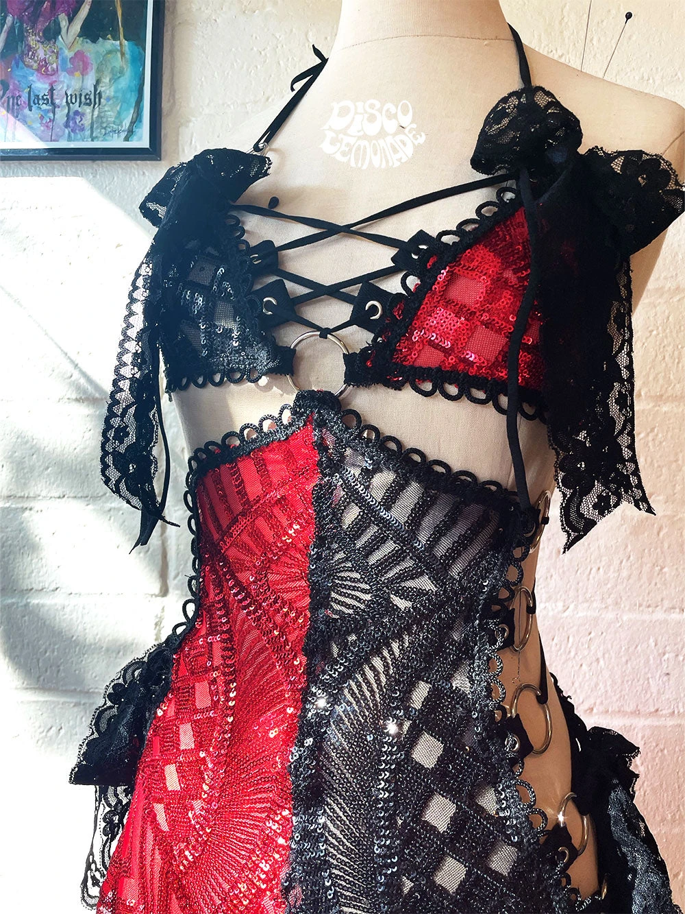 Half red and half black sequin in the hardware style Disco Dress.